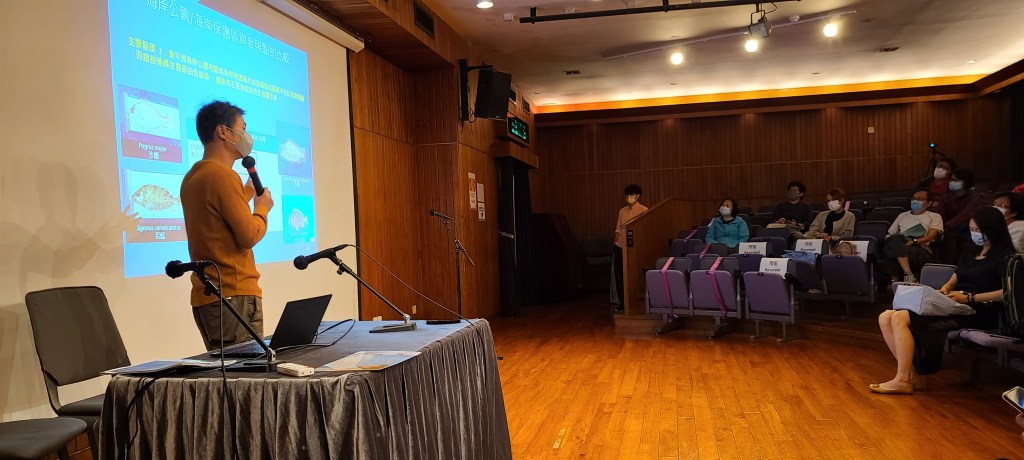 A public seminar was delivered in 2021 by Mr. Vincent LAI 賴志誠先生 and Dr. Klinsmann CHEUNG 張國良博士 of Ecosystems Limited to present findings from the fisheries resources study commissioned by AFCD on adult fish within marine parks and marine reservethe.